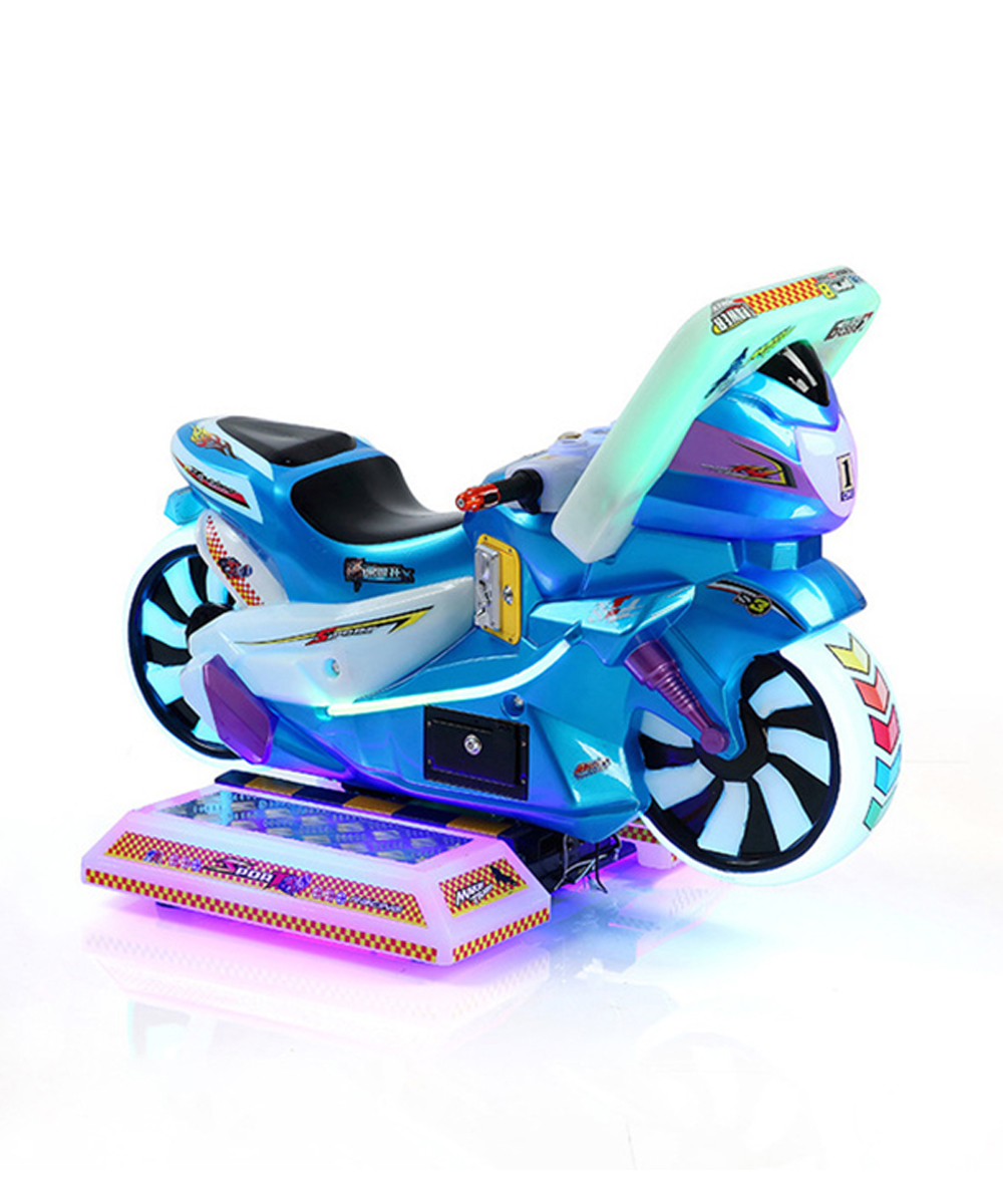 מכונת משחק סימולטור אופנועים יפייפיה הכולל מסך לתצוגה.
